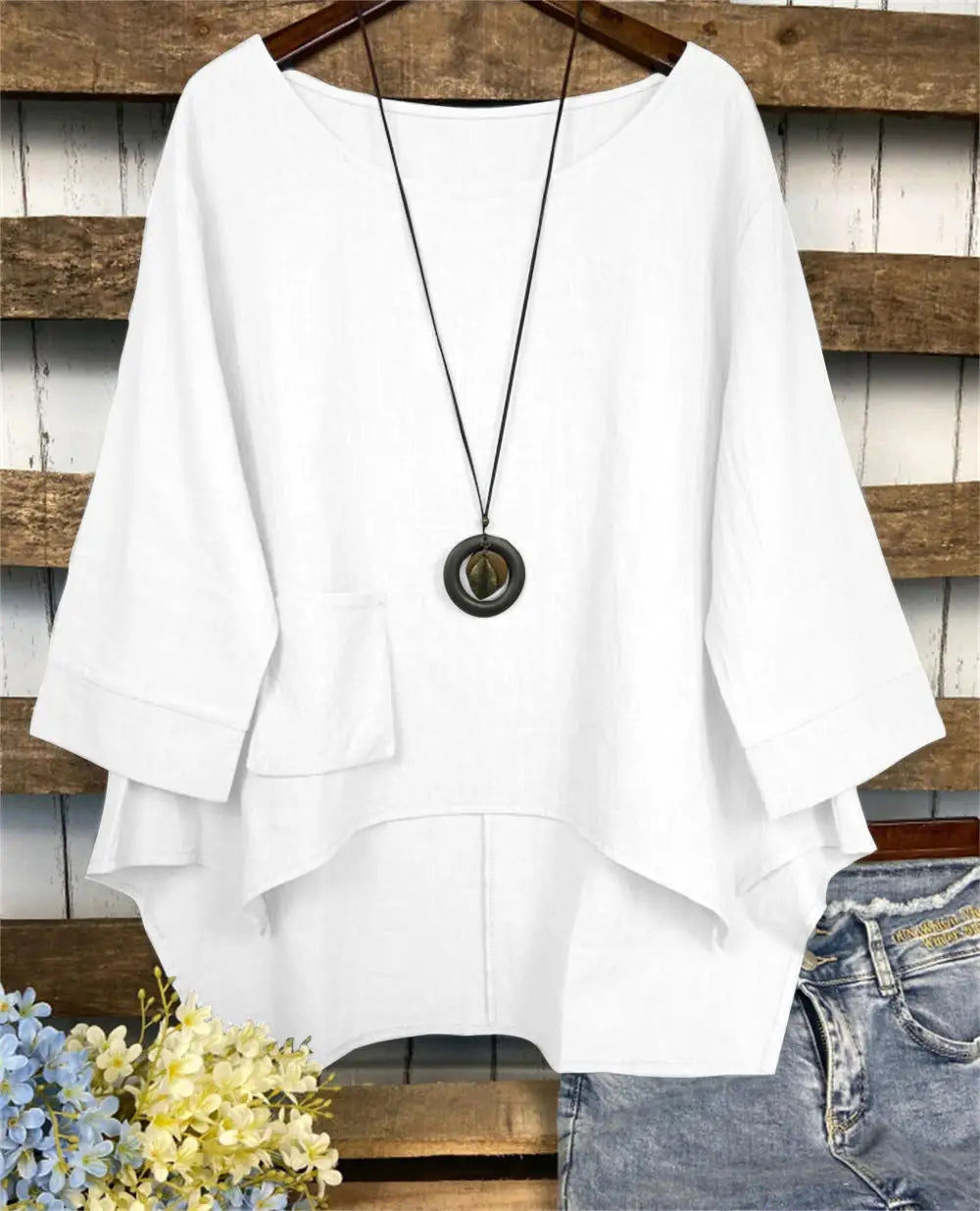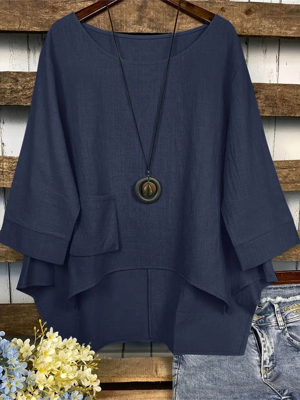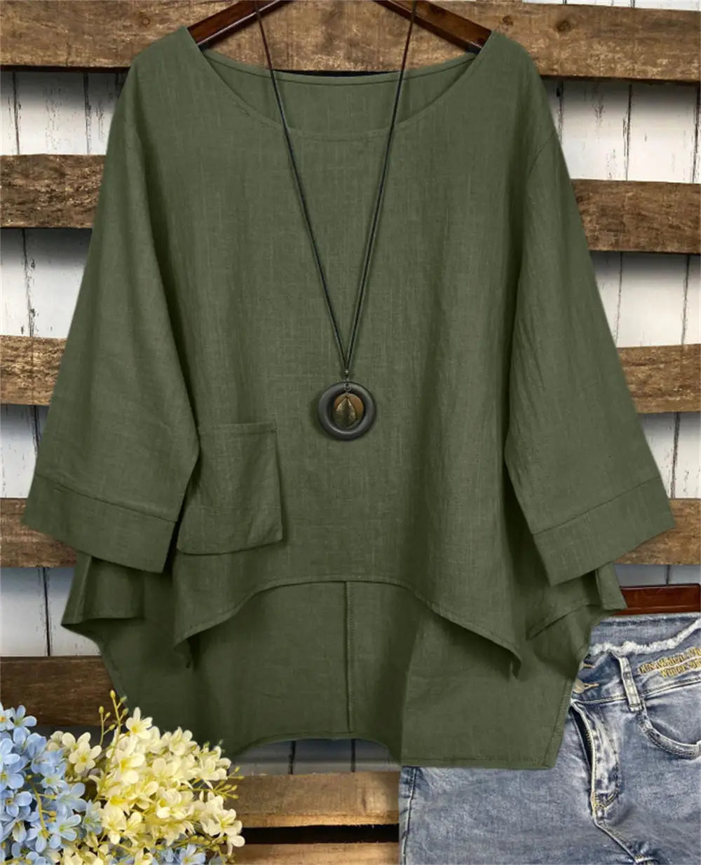 "Blouse parfaite. Le tissu est doux et la coupe tombe super bien. Je pourrais la porter tous les jours."